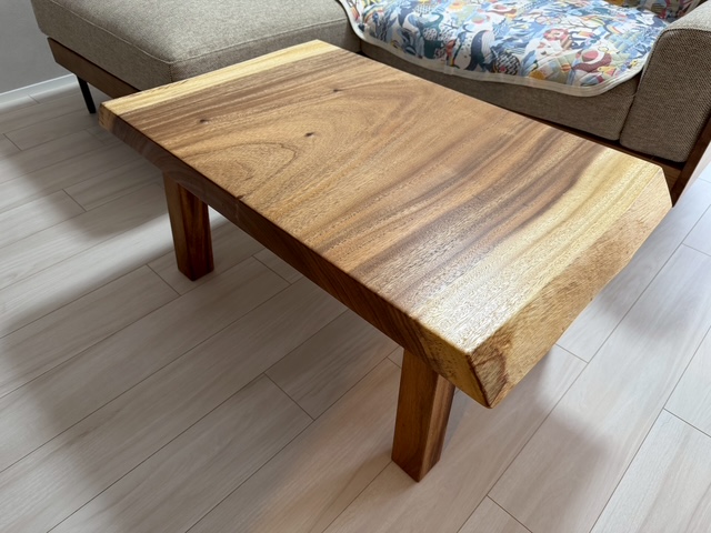 長さ2330mmの一枚板を1800mmでカットし、ダイニングテーブルとセンターテーブルにしました。